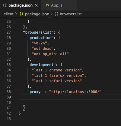 5000 포트를 api 서버로 이용하기 위해서 client 의 package.json 에 추가적으로 명시하기 (프록시 설정하기)
