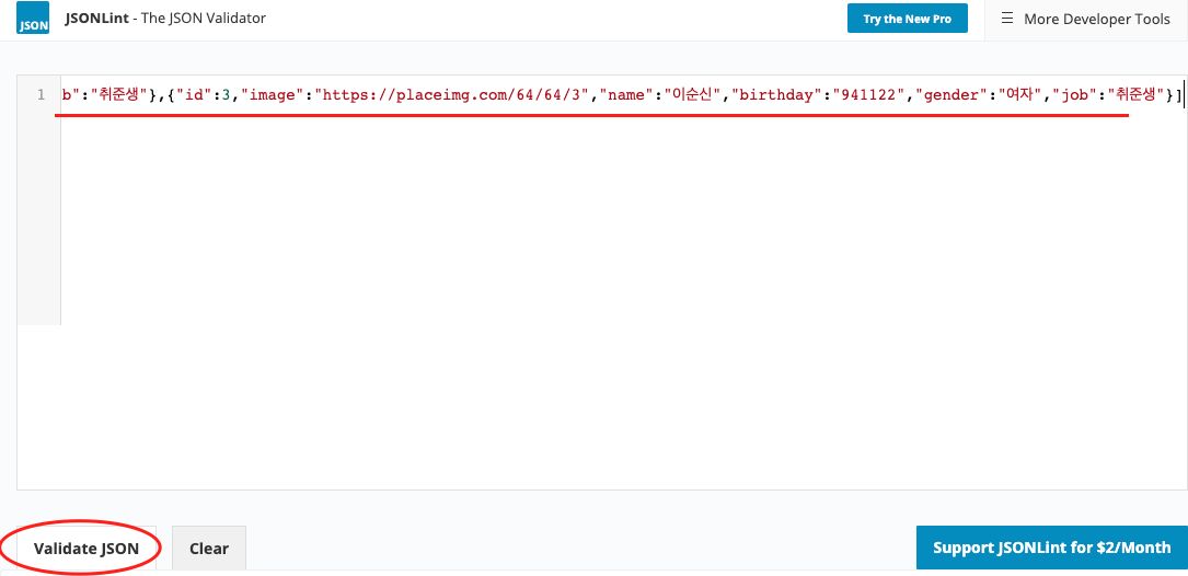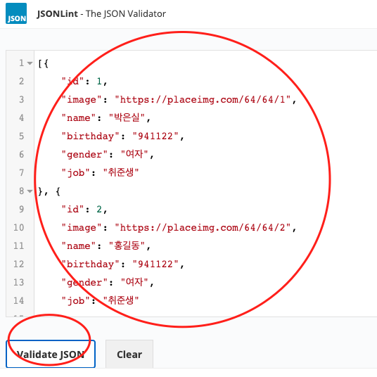실제 서버 접속했을때 api 서버가 출력해준 데이터가 올바른 json 형식인지 확인해주는 서비스